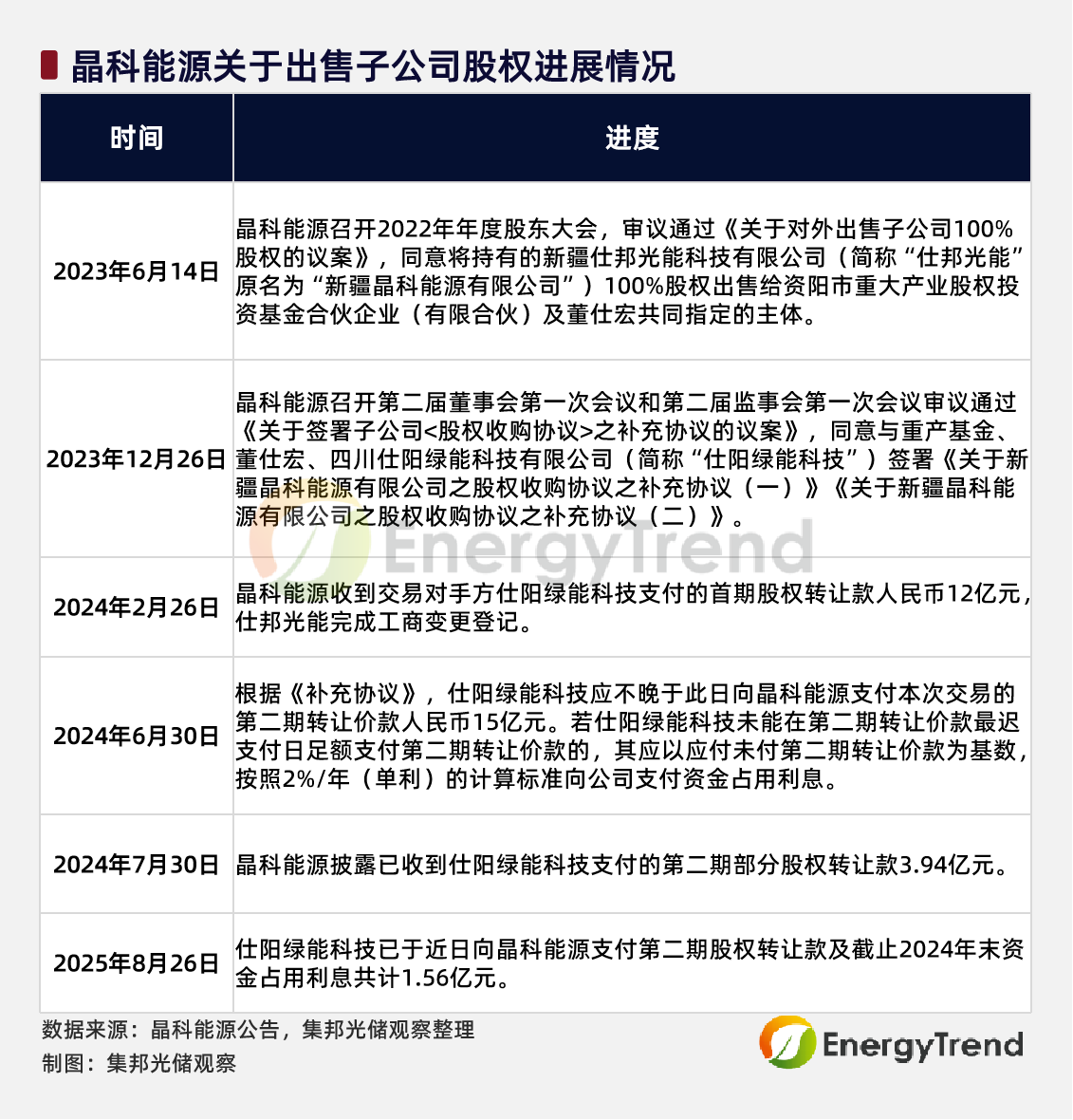 图:晶科能源关于出售子公司股权进展情况